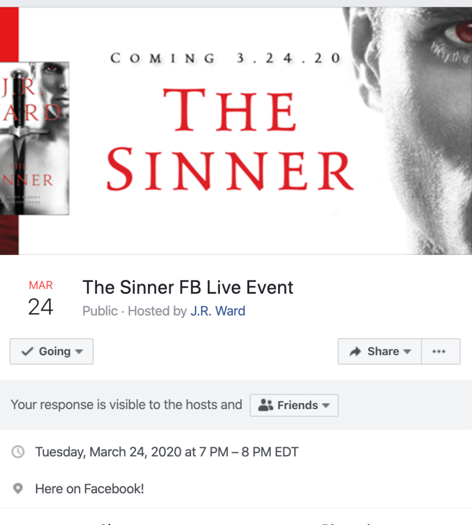 As always , Warden will be having a book birthday live event for the release of The Sinner! https://www.facebook.com/events/3674904352584256/