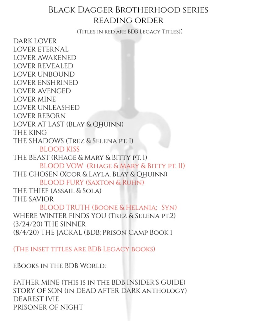 - Dark Lover – BDB #1 (Wrath and Beth Randall)